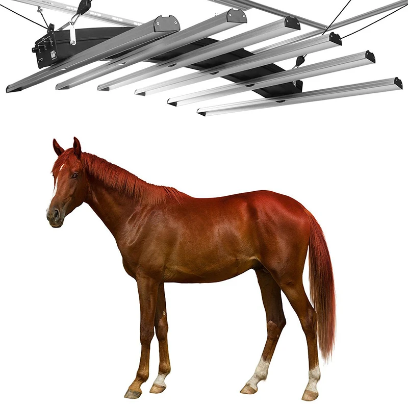 Equine Solarium LED Light Therapy System is a type of therapy equipment designed for horses. It uses a combination of Bule, infrared and red LED lights to provide therapeutic benefits.