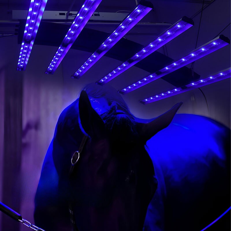 Blue light therapy can kill the bacteria that cause acne without damaging surrounding skin tissue, and improve the appearance of aging or sun-damaged skin for skin rejuvenation. It also can help regulate circadian rhythms and improve mood, keeping the horse calm.